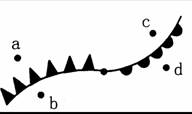 13.图中a、b、c、d四点位于雨区的是 ( )