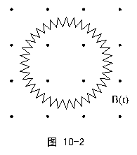 [例题2]如图10-2所示,在匀强磁场中,有圆形的弹簧线圈。试问:当磁感应强度逐渐减小时,线圈会扩张还是会收缩?![]()