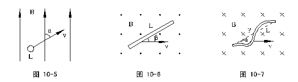 ②直导体平动,v⊥B ,L⊥B ,但v与L夹β角(如图10-6所示),则ε= BLvsinβ;![]()