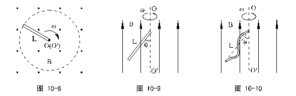 ④直导体转动,转轴平行B、和L成一般夹角θ、且过导体的端点,角速度为ω(如图10-9所示),则ε=