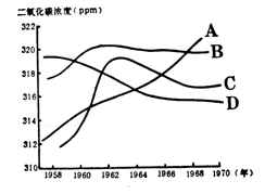 读图2-4,图中A、B、C、D四曲线中,能正确表示大气中二氧化碳含量变化的是: