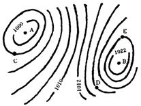 27、读图2-3,A、B、C、D几种天气系统中,能形成我国东南沿海夏秋季台风天气的是: