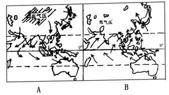 ⑷从B图中可以看出西南季风是南半球的 风向北越过赤道,在 力影响下向右偏转形成的。