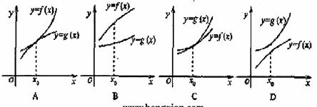 例7.(2008福建卷,理12)已知函数y=f(x),y=g(x)的导函数的图象如下图,那么y=f(x),y=g(x)的图象可能是(   )