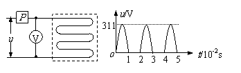 解:从u-t图象看出,每个周期的前半周期是正弦图形,其有效值为220V;后半周期电压为零。根据有效值的定义,