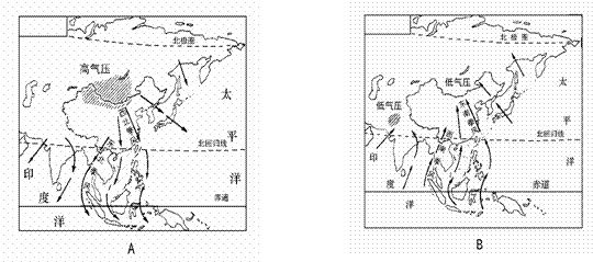 (1)表示冬季风的是 图,它来自 地区,性质 所以我国大部分地区冬季气候特点 。