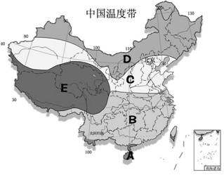 划分这五个温度带的主要指标是____________。此外,还有一个地势较高的E________________。