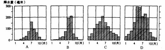 (1)四城市降水季节分配的共同特点是,在一年中,降水集中在 季,而 季降水最少。