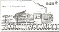 右面这幅宣传图(图中火车运载的是一根玉米长棒)反