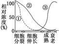 解析:参与植物生命活动调节的不是单一激素,而是多种激素协调共同作用的结果。细胞分裂素与生长素共同促进果实的生长发育,表现为协同作用。观察乙烯含量变化曲线发现,成熟、衰老的果实中乙烯含量都较高。(