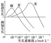 解析:当生长素浓度为10-9 mol·L-1时,对根、芽生长均起促进作用,对于根、芽、茎,生长素均具有两重性作用,根向地生长的原因是背地侧生长素浓度低于向地侧,但其背地侧生长快于向地侧。