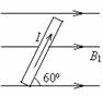 。位于纸面内的细直导线,长L=1m,通有I=1A的恒定电流。当导线与B1成60°夹角时,发现其受到的安培力为零,则该区域同时存在的另一匀强磁场的磁感应强度B2的可能值为(