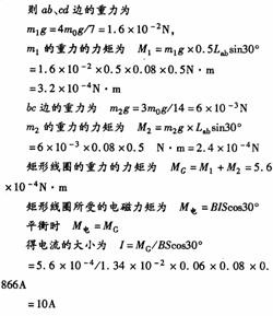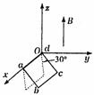 [应用2]矩形线圈abcd放在匀强磁场中,磁场方向沿z轴,磁感应强度B=1.34×10-2T.如图所示.线圈边长ad=6cm,ab=8cm,线圈是均匀的,总质量为2.8×10-3kg,此线圈可绕ad边自由转动,当线圈静止在与xOz平面成30°角的位置,则通过线圈的电流的大小为 ,方向为