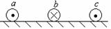 如图所示,在绝缘的水平面上等间距固定着三根相互平行的通电直导线a、b和c,各导线中的电流大小相同,其中a、c导线中的电流方向垂直纸面向外,b导线电流垂直纸面向内。每根导线都受到另外两根导线对它的安培力作用,则关于每根导线所受安培力的合力,以下说法正确的是(