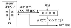 (1)利用高炉尾气中的水蒸气与甲烷催化重整得到合成气,化学方程式为