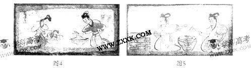 12.图4、图5是甘肃嘉峪关、酒泉一带魏晋古墓中发现的以庖厨为题材的彩绘墓砖。这两幅图