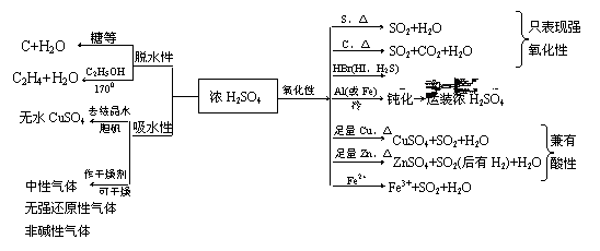 ①稀H2SO4具有酸的一般通性,而浓H2SO4具有酸的通性外还具有三大特性: