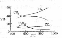 为加热某地煤样所得煤气组成及体积分数随温
