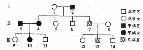 (3)假如III-10携带乙病的致病基因,那么III-10和III-13结婚,生育的孩子不患病的概率是 。