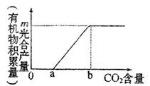 在最适宜的光照、温度和水、肥等理想条件下,空气中CO2含量与植物光合产量(有机物积累量)的关系如图所示。理论上分析,不正确的是( )