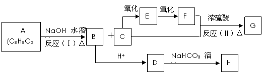 (14分)化合物A(C8H8O3)为无色液体,难溶于水,有特殊香味,从A出发,可发生图示的一系列反应,图中的化合物A硝化时可生成两种一硝基取代物,化合物D能使FeCl3溶液显紫色,G能进行银镜反应。
