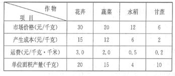 下表是我国某城市郊外四种农作物生产、运费与市场价格资料,回答21题: