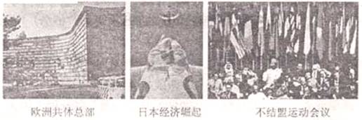 36.(11分)第二次世界大战结束后,各交战国筋疲力竭。战争摧毁了经济,也摧毁了旧的世界无格局。如何在废墟之上恢复经济,重购一个新的国际关系,大国之间开始了新一轮的明争暗斗。请仔细观察下面漫画
