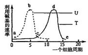 用放射性同位素分别标记U和T的培养基,培养蚕豆根尖分生区细胞,观察其有丝分裂周期为20小时,根据这两种碱基被细胞利用的速率,绘制成的曲线如图所示。下列对此结果的分析中,不正确的是