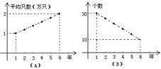 (A)图表明:从第1年平均每个养鸡场出产1万只鸡上升到第6年平均每个养鸡场出产2万只鸡;