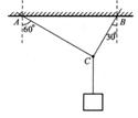 ★★★★26.如图所示,相距4m的两根柱子上拴着一根5m长的细绳,细绳上有一光滑的小滑轮,吊着180N的重物,静止时AO、BO绳所受的拉力各是多大?[7]