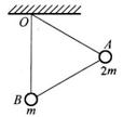 ★★★13.如图所示,将粗细均匀、直径相同的均匀棒A和B粘合在一起,并在粘合处用绳悬挂起来,恰好处于水平位置而平衡,如果A的密度是B的2倍,那么A的重力大小是B的______倍.[5]