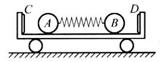 ★★★10.A、B为两个相同的固定在地面上的气缸,内部有质量相等的同种气体,且温度相同,C、D为两重物,质量mC>mD,按如图所示方式连接并保持平衡.现使它们的温度都升高10℃,不计活塞质量及滑轮系统的摩擦,则系统重新平衡后 ( ).