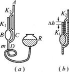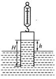 ★★★12.如图所示,用弹簧秤拉着一支薄壁平底玻璃试管,将它的开口向下插在水银槽中,由于管内有一部分空气,此时试管内水银面比管外水银面高h.若试管本身的重力与管壁的厚度均不计,此时弹簧秤的示数等于( ).[3]