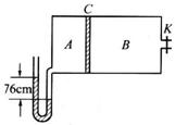 ★★★8.如图所示,一端封闭的U形玻璃管竖直放置,左管中封闭有20cm长的空气柱,两管水银面相平,水银柱足够长.现将阀门S打开,流出部分水银,使封闭端水银面下降18cm,则开口端水银面将下降___cm(设此过程中气体温度保持不变,大气压强为76cmHg).