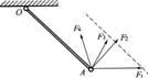 ★★★★25.如图所示,水平放置的两固定光滑硬杆OA、OB成θ角,在两杆上各套一轻环P、Q,两环用细绳相连.现用一大小为F的恒力沿OB方向拉圆环Q,当两环处于平衡状态时,绳子的拉力大小为______.[4]