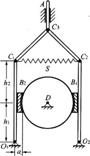 ★★★★★24.在一些重型机械和起重设备上,常用双块式电磁制动器,它的简化示意图如图所示,O1和O2为固定铰链.在电源接通时,A杆被往下压,通过铰链C1、C2、C3使弹簧S被拉伸,制动块B1、B2与转动轮D脱离接触,机械得以正常运转.当电源被切断后,A杆不再有向下的压力(A杆及图中所有连杆及制动块所受重力皆忽略不计),于是弹簧回缩,使制动块产生制动效果.此时O1C1和O2C2处于竖直位置.已知欲使正在匀速转动的D轮减速从而实现制动,至少需要M=1100N·m的制动力矩,制动块与转动轮之间的摩擦因数μ=0.40,弹簧不发生形变时的长度为L=0.300m,转动轮直径d=0.400m,图示尺寸a=0.065m,h1=0.245m,h2=0.340m,问选用的弹簧的劲度系数k最小要多大?(第十三届全国中学生物理竞赛预赛试题)[15]