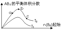 2AB3(g)化学平衡状态的影响,得到如下图所示的变化规律(图中T表示温度,n表示物质的量),根据如图可得出的判断结论正确的是( )