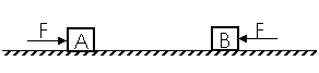 如图所示,A、B两物体质量分别为mA、mB且mA>mB,置于光滑水平面上,相距较远。将两个大小均为F的力分别作用在A、B上经相同距离后,撤去两个力,接下来两物体发生碰撞并粘在一起,请判断两物体将( )