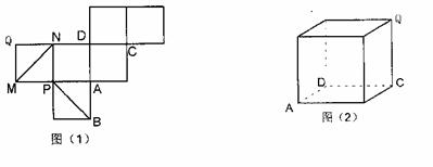 20.(本小题满分13分)如图(1)是一正方体的表面展开图,MN 和PB 是两条面对角线,请在图(2)的正方体中将MN 和PB 画出,并就这个正方体解决下面问题。