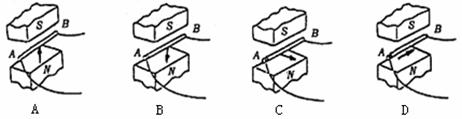 各种情况让闭合电路的一段导体AB在磁场中沿箭头所示方向运动,其中能够产生感应电流 的是: