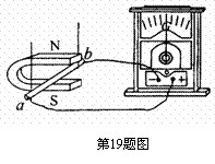 19.小芳在“探究感应电流方向与哪些因素有关”时,猜想金属棒在磁场中运动产生的感应电流的方向可能与磁场的方向有关,也可能与金属棒的运动方向有关。若以其中一个影响因素为探究课题,请帮助小芳设计实验探究的操作步骤。