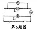 6.如图所示,当开关闭合,L1、L2都发光,过一段时间后其中一盏灯突然熄灭,而电流表、电压表的示数都不变,产生这一现象的原因是: