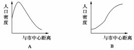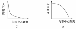 1.能正确反映Ⅱ阶段该城市人口密度与距离市中心的远近两者之间关系的是 ( )