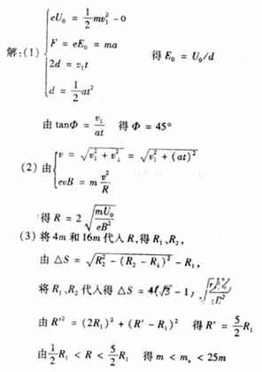 解析:第(1)问本题考查带电粒子在磁场中的运动。第(2)问涉及到复合场(速度选择器模型)第(3)问是带电粒子在有界磁场(矩形区域)中的运动。