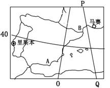 读“世界局部地区图”(右图),当图中PQ线为昏线且与极圈相切时,回答1—2题。