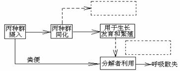 (3)根据第(2)小题的信息,在下图虚框中用文字补充完成能量流经丙种群的情况。