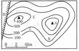 读材料:小明班上准备组织一次登山活动。为了安全,老师出示一张等高线图(如图),并强调安全事项,请根据等高线地形图的有关知识。回答37~40题。