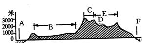 (4)图C是沿赤道的非洲地形剖面图,从图中可以看出其地形以为 主,地势特征是 。
