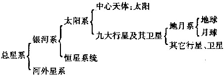 宇宙间的天体都在运动着。运动着的天体因互相吸引和互相绕转,而形成许多大小不同的天体系统。按大小规模和包含的关系分成不同的级别和层次。同学应注意掌握天体系统结构表并通过其来分析与天体系统有关的问题。