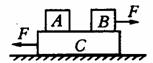 12(2008年9月佛山禅城实验高中高级中学高三第一次月考试卷)、如图所示,两个等大的水平力F分别作用在物体B、C上。物体A、B、C都处于静止状态。各接触面与水平地面平行。物体A、C间的摩擦力大小为f1,物体B、C间的摩擦力大小为f2,物体C与地面间的摩擦力大小为f3,则:(D)